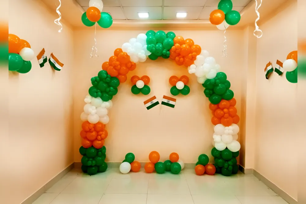 Best balloon decoration for decorating your offices and shops with balloons and Indian paper flags on Independence Day. You can customize this package as per your liking.