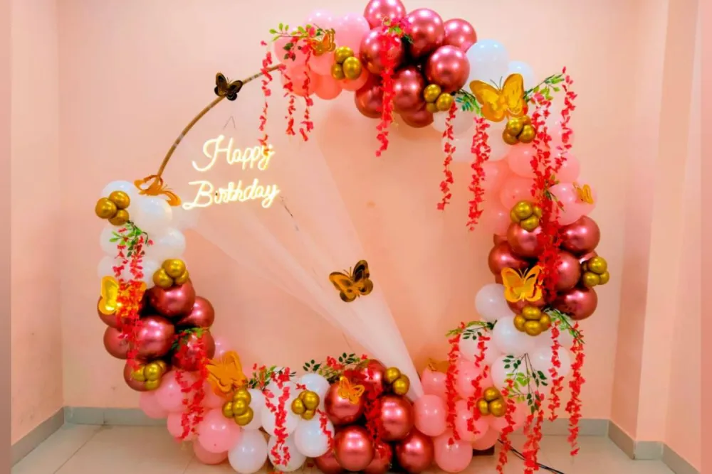 Elegant that's what we need!! Get this beautiful birthday ring decoration at your home in just best price rate. perfect touch of personalisation and a little bit of flower with chrome and pastel balloons.