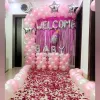 Want to welcome your baby girl with some special decoration and looking for a perfect theme under you budget, then this decoration is a perfect fit for your surprise. Balloons, metallic curtains and baby foil set is give an amazing look to your decoration.