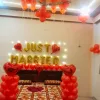 - 100 Red and Golden Metallic Balloons (30-40 Balloons will be Stuck on the ceiling with removable paper tapes.)