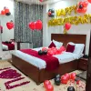 - 100 Metallic Balloons [50 Red and 50 White, 30-40 Balloons will be stuck on the ceiling with removable paper tapes.)