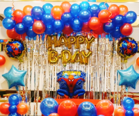 Marvelous decoration of Spiderman theme for your son's birthday. make your kids birthday more special and memorable with so many kid's theme garland decoration under budget. surprise your son with this red and blue balloon spider man theme decoration.