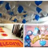 - 200 Pastel Balloons [White & Blue, to make a Backdrop Arch, Standees for Foil and bunches as Table Centerpieces].