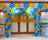Golden balloon theme decoration for birthday party celebration, make your party more special with this chrome balloon garland decoration.