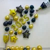 - 100 Black and Golden Metallic Balloons (30-40 Balloons will be stuck on the ceiling with removable paper tapes.)