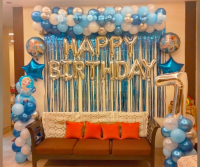 250 Metallic Balloons [125 Blue and 125 White, to make an arch, 3 Standees and spread on floor].