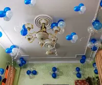 We use metallic balloons. Helium balloons are not advisable for ballon decoration at home.