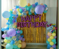 Be a unicorn in the field of horses. Every girl would love this wonderful unicorn theme decoration with pastel and chrome balloons. Welcome a unicorn in your home.