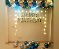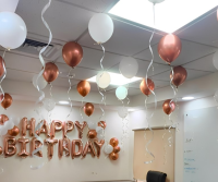 200 Metallic Balloons [30-40 Balloons will be stuck on the ceiling with removable paper tapes].