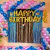 - 100 Chrome Balloons [50 Golden, 25 Blue and 25 Silver, to make a c-shaped arch on wall].